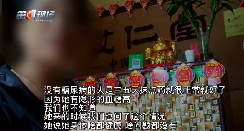 隨后,記者也陪同呂女士來到了鹽田區(qū)的這家艾仁堂養(yǎng)生館,呂女士燙傷事發(fā)時在店的工作人員承認了確有其事,但辯稱在艾灸過程中燙傷是時常發(fā)生的,另外,呂女士燙傷的如此嚴重,是因為她患有糖尿病。