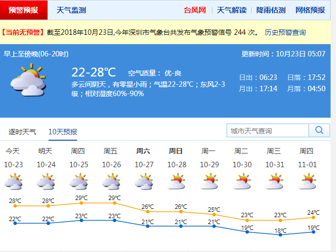 進(jìn)入10月以來,天氣漸漸轉(zhuǎn)涼,目前已有兩次明顯冷空氣影響深圳,主要出現(xiàn)在10月11日至12日、16日至17日,10月27日至29日還將有冷空氣。據(jù)了解,與去年相比,今年冷空氣來得早一些,最早在9月上旬就有冷空氣影響了,冷空氣的頻次也相對較多,但強(qiáng)度都不是太強(qiáng),所以總體氣溫較舒適。