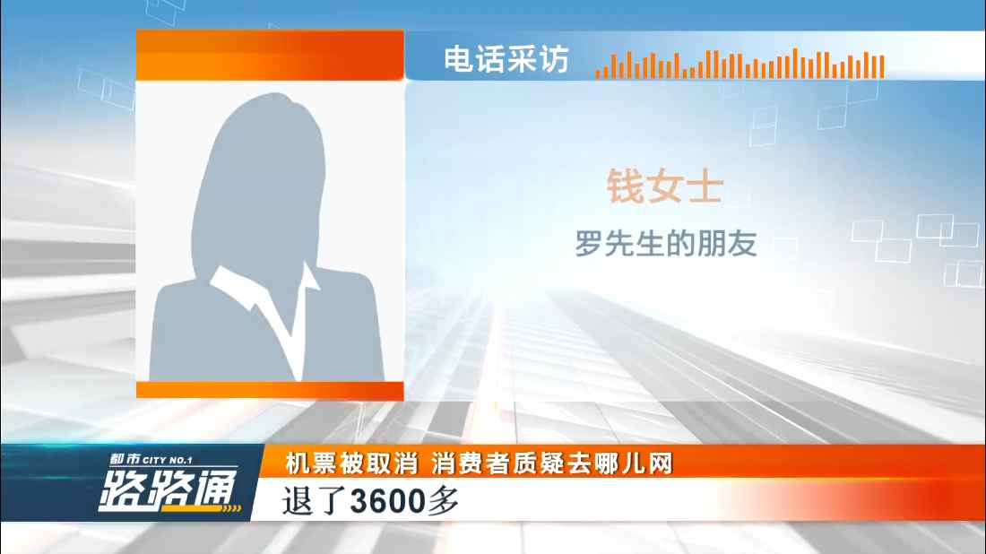 羅先生的朋友錢女士表示,她的機票總價7000多,退了3600多,是去哪兒網(wǎng)賠付給她的。