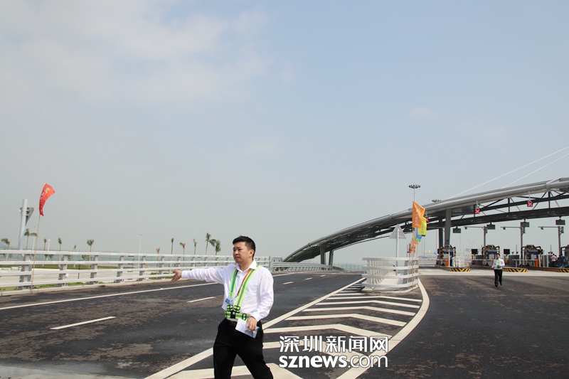 私家車(chē)車(chē)主在上橋前不忘拍照,記錄歷史一刻