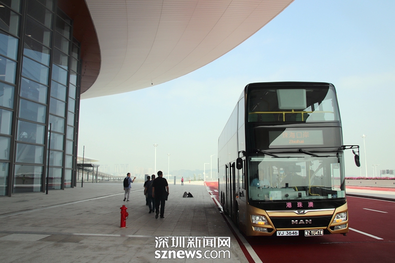 又一輛穿梭大巴抵達(dá)港珠澳大橋珠??诎洞髽?/p>