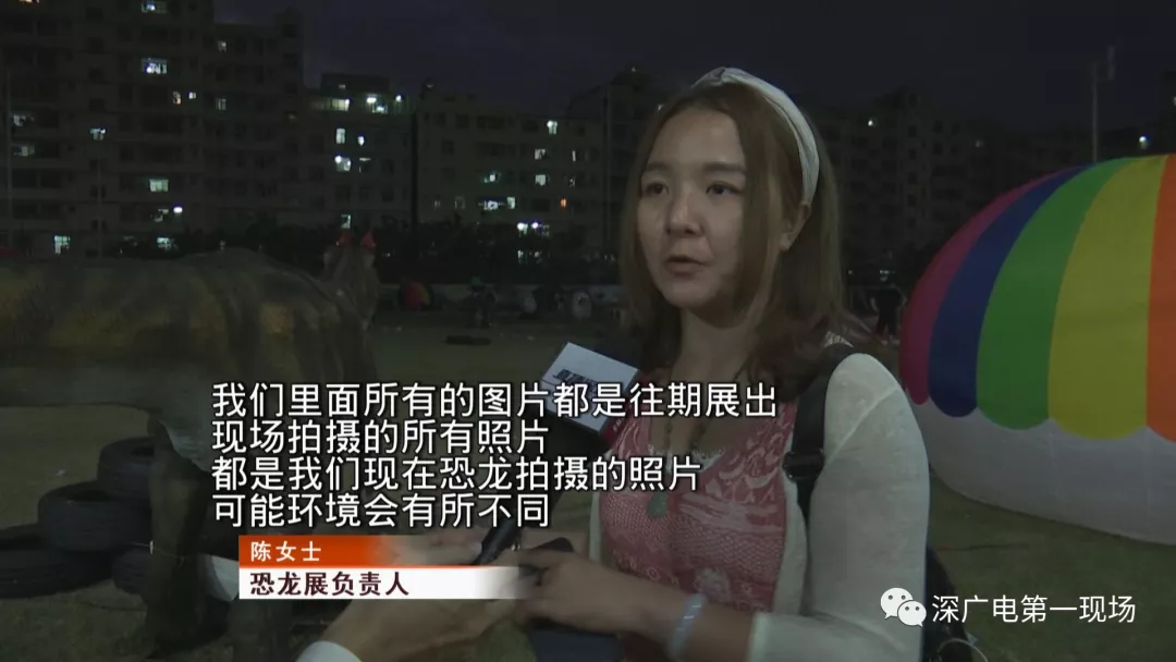 恐龍展負(fù)責(zé)人陳小姐說:“我們里面所有的圖片都是往期展出,可能環(huán)境會有所不同,因?yàn)橐郧拔覀冇性谏鷳B(tài)園公園、景區(qū)里面辦,是有一些樹木為背景的,因?yàn)槲覀冞@里只有一大片草地,可能看起來的話,造景不太美觀。”