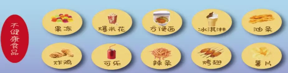 4.選擇營養(yǎng)健康的食品,少吃薯片、燒烤、方便面等不健康食品。