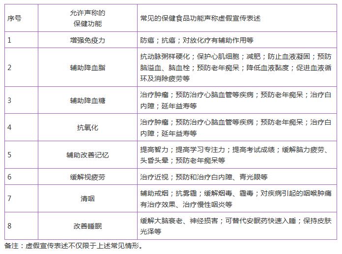 常見(jiàn)的保健食品功能聲稱(chēng)虛假宣傳表述