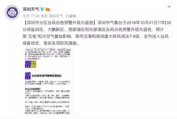 深圳市氣象臺(tái)于2018年10月31日17時(shí)30分