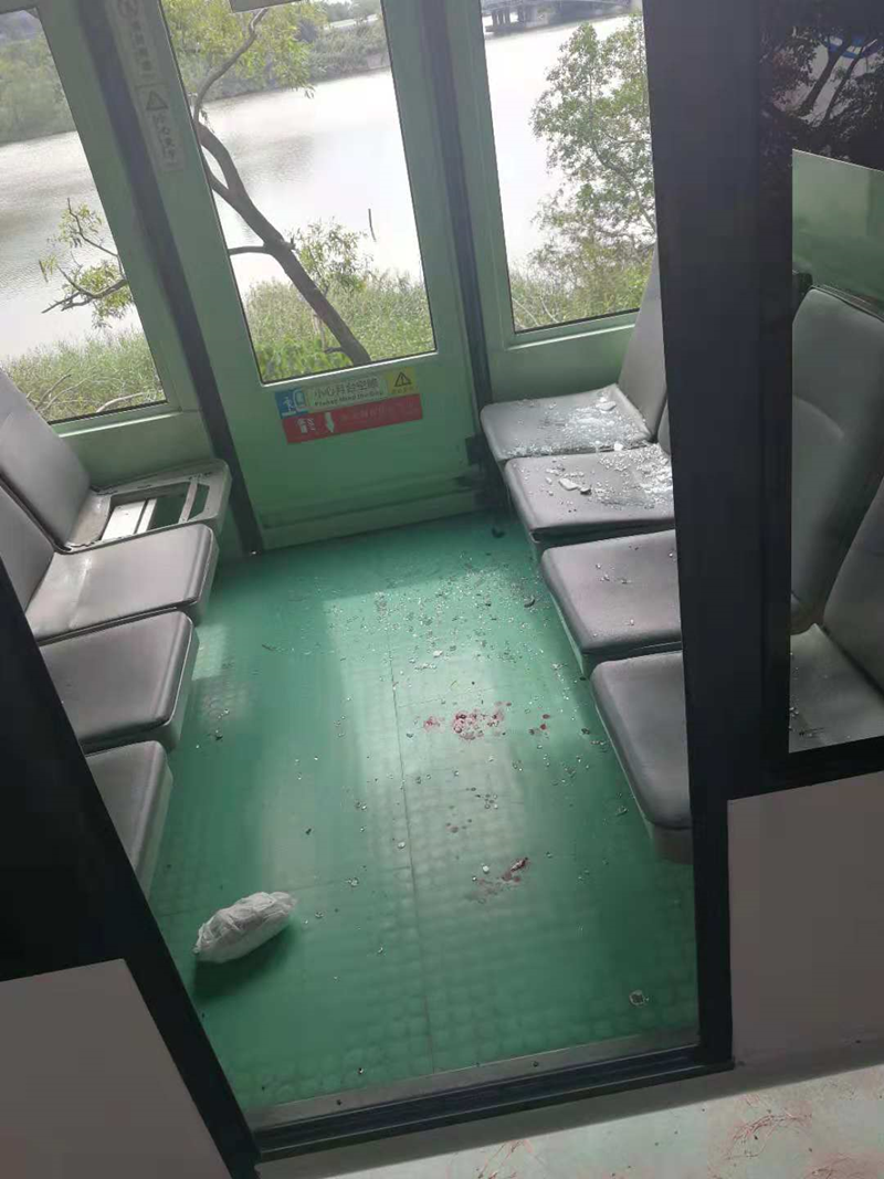 目擊者提供的照片顯示,歡樂干線車廂地板上留下了受傷者的血跡