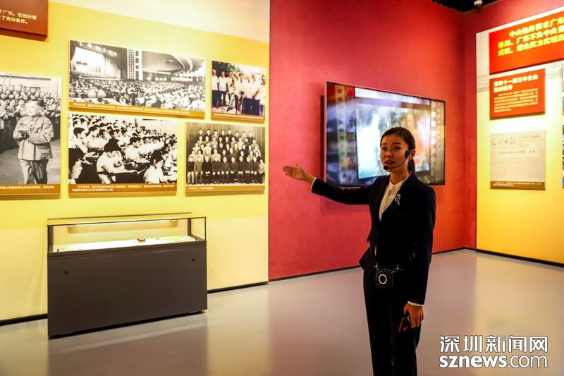 講解員正在對(duì)改革開放前廣東的情況進(jìn)行講解(深圳新聞網(wǎng)記者 潘潤華、胡津瑋 實(shí)習(xí)生 張林羽 攝影報(bào)道)