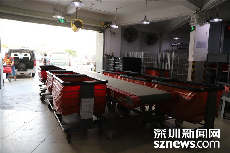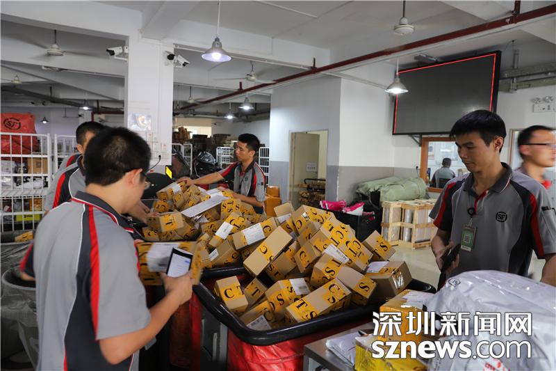 忙碌的田貝營(yíng)運(yùn)部?jī)?nèi),順豐員工正在搬運(yùn)包裹