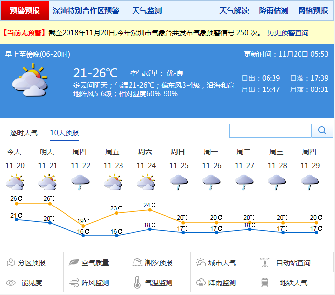 市氣象局發(fā)布未來十天天氣預(yù)報(bào)(數(shù)據(jù)更新于11月20日8時(shí)10分)