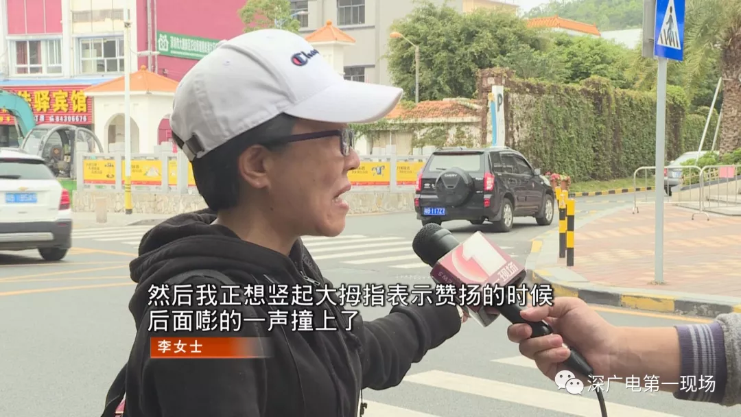 李女士說,這輛白色小汽車是主動停下讓行的,沒想到才停下來幾秒鐘,就被后面一輛車直接撞到車尾,這讓司機始料未及,他趕緊下車查看。