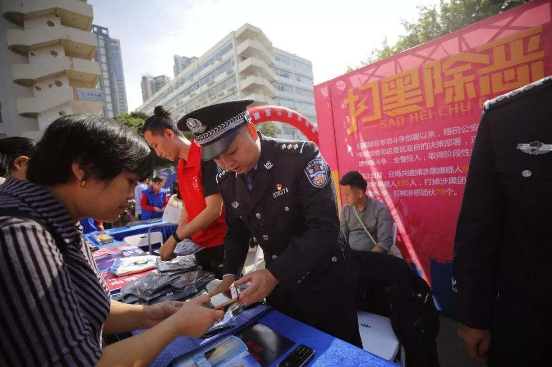 深圳市公安局指揮部有獎(jiǎng)舉報(bào)中心聯(lián)合福田公安分局開(kāi)展“有獎(jiǎng)舉報(bào)”宣傳活動(dòng),民警現(xiàn)場(chǎng)發(fā)放宣傳資料,積極發(fā)動(dòng)群眾踴躍舉報(bào),不斷提高群眾對(duì)掃黑除惡專項(xiàng)斗爭(zhēng)的知曉度,市民咨詢不斷,形成了對(duì)黑惡勢(shì)力“零容忍”和人人喊打的良好氛圍。