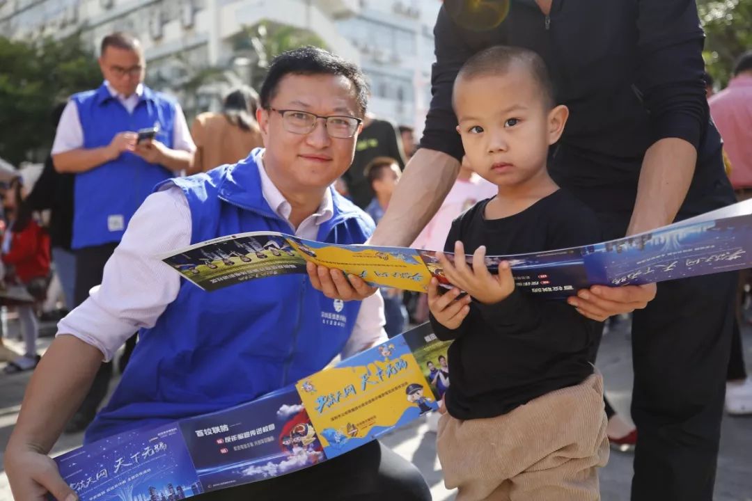 福田公安分局反詐騙宣傳團隊開展反詐騙宣傳、互動游戲,通過異形展板、反詐騙海報等,向市民防范宣講常見詐騙手段,群眾紛紛拿起手機“移形換影”自拍,掃一掃“福田警察”二維碼,加入到反詐騙行動隊伍,為“反詐騙”代言,提高防騙技能。同時,分局法制、經偵、禁毒、出入境、戶政等部門現(xiàn)場擺臺,民警一一解答群眾提出的各類咨詢問題。
