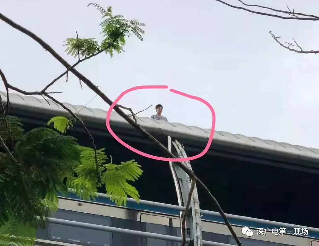 從乘客拍攝的視頻可以看到,這名男子闖入軌行區(qū)后,一開始爬到了外側的護欄上,但過了一會,他就順著護欄爬上了車站的頂棚。