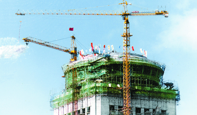 1984年9月4日,國貿大廈封頂。 劉廷芳 攝