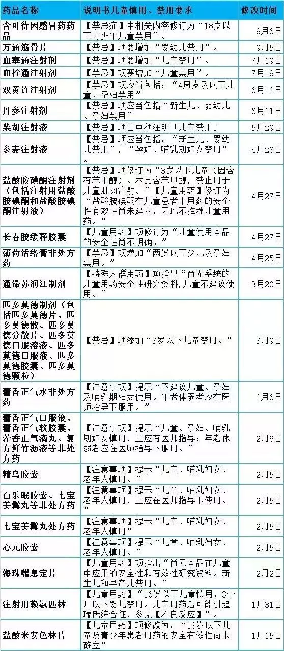 另外,關(guān)于一些藥品對(duì)兒童限用、慎用的匯總?cè)缦?