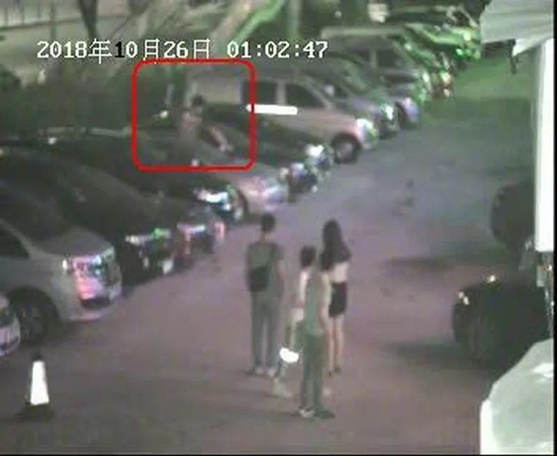 10月26日,事主伍先生發(fā)現(xiàn)停在下梅林廣場停車場的轎車引擎蓋被人為踩凹陷,而旁邊的幾輛轎車也有類似狀況。梅林派出所在接到報案后立即展開調查,民警通過調取監(jiān)控錄像發(fā)現(xiàn)一名男子,在凌晨時,先是爬上一輛小轎車,從一輛車踩跨到另一輛車,連續(xù)踩過4輛車后才跳下離開。