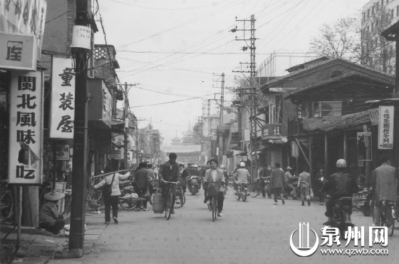 舊城改造前的東街,自行車(chē)是當(dāng)時(shí)主要交通工具。(鯉城區(qū)檔案館館藏)