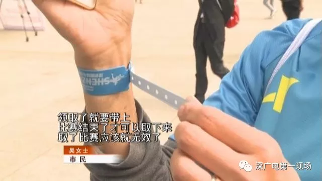 今天中午,已經(jīng)有不少要參與本次馬拉松比賽的市民,前往市民中心廣場領(lǐng)取號碼簿和參賽包。吳女士今年是第一次參加馬拉松全程的比賽。在領(lǐng)取的物品中,有一個藍色手環(huán)比較特別。