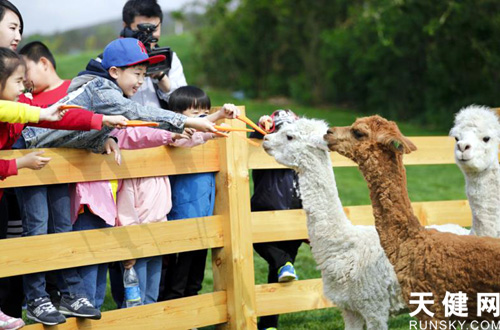 三寰牧場孩子與羊駝嬉戲玩耍