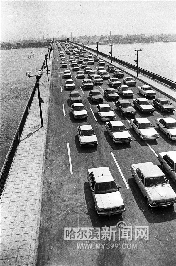 1986年9月20日,并排5輛轎車通過松花江公路大橋。當(dāng)日,總投資2.15億元的哈爾濱松花江公路大橋建成通車。該工程是“六五”期間國家重點建設(shè)工程之一。大橋全長1588米,其中主橋1198米;橋面凈寬24米,行車道19米,人行道兩邊各2.5米,是全國千米以上公路大橋最寬的。