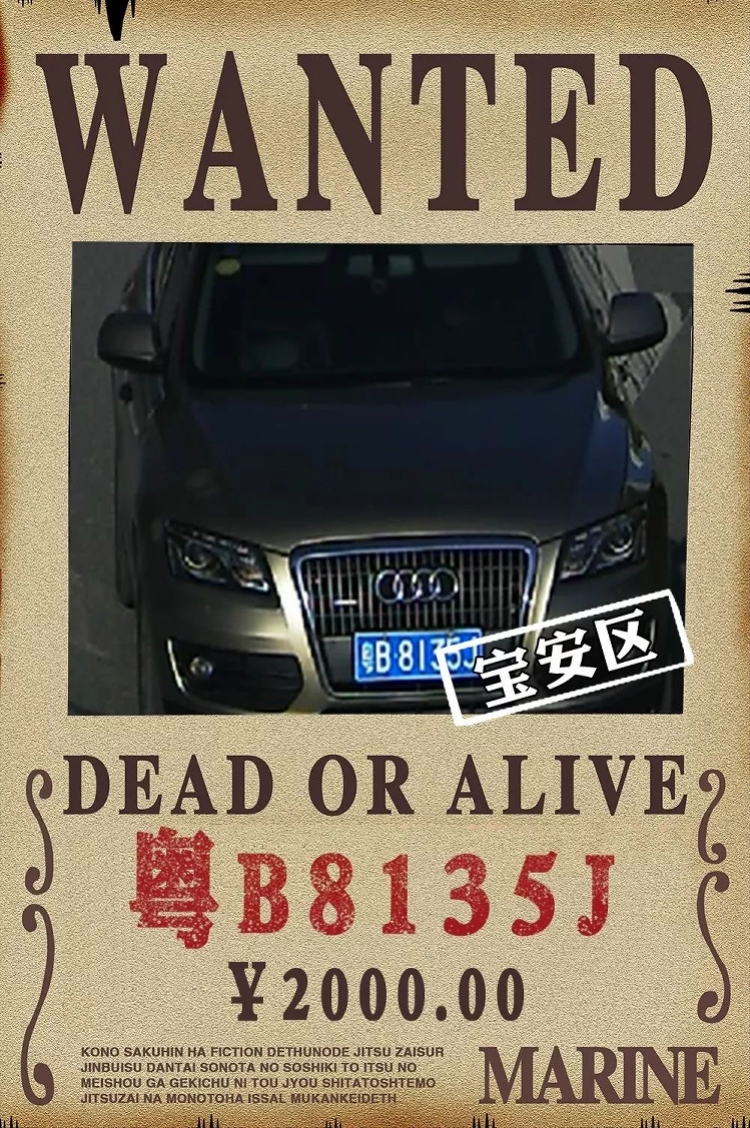 深圳新聞網(wǎng)2018年12月19日訊 (記者 劉婷)深圳交警仿照《海賊王》漫畫(huà)海報(bào)設(shè)計(jì),公布正“懸賞”通緝10輛套牌車(chē)。按“每宗獎(jiǎng)勵(lì)2000元”的規(guī)定,對(duì)舉報(bào)線索查證屬實(shí)的群眾進(jìn)行獎(jiǎng)勵(lì)。