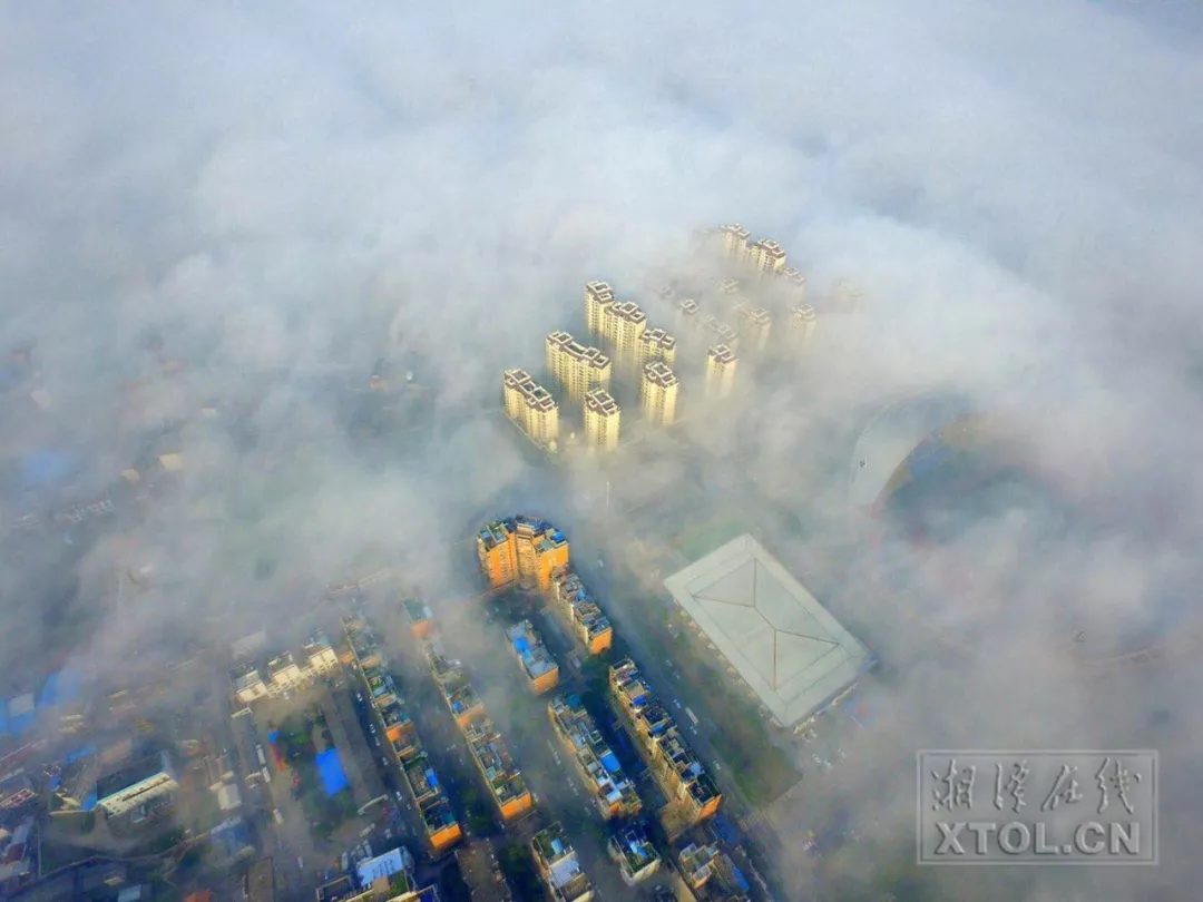 氣勢恢宏的萬樓景區(qū)與湘江碧水藍天交相輝映,構成一幅美麗的畫卷。(記者 方陽 攝)