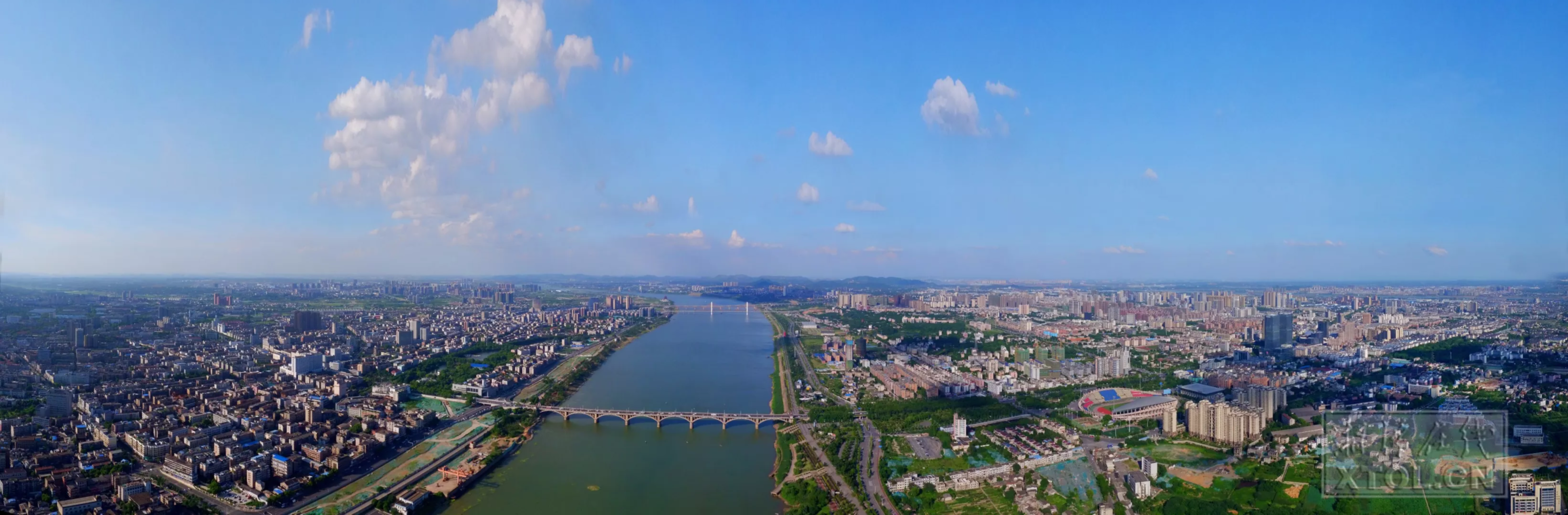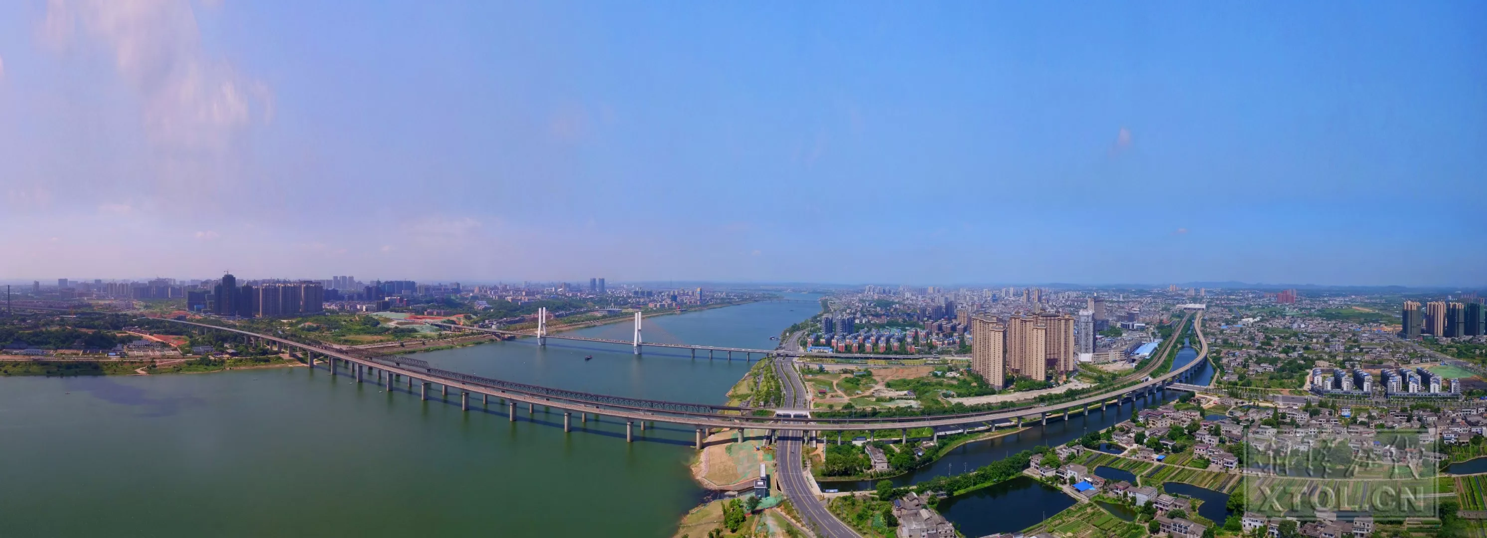 藍天白天映襯下的湘江湘潭段,江水清澈。(記者 方陽 攝)