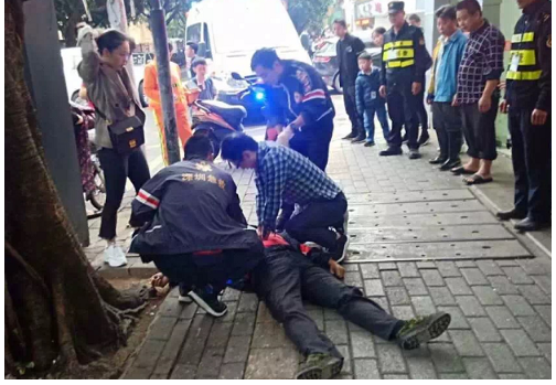 等待120的過程中,周青雨給這名倒地男子按壓幾輪后發(fā)現(xiàn),有了一點(diǎn)微弱呼吸。這個(gè)時(shí)候另一個(gè)市民走向前,摸了倒地男子的脈搏后,接替周青雨繼續(xù)按壓。后經(jīng)了解,其為市第二人民醫(yī)院神經(jīng)內(nèi)科醫(yī)生黃興。