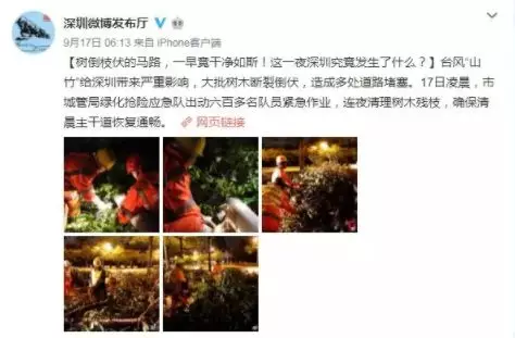 臺(tái)風(fēng)“山竹”肆虐時(shí),“深圳發(fā)布”第一時(shí)間發(fā)布臺(tái)風(fēng)登陸的微信,不到一小時(shí),閱讀量就達(dá)到了10W+,發(fā)布信息的及時(shí)獲得了網(wǎng)友的一致點(diǎn)贊。臺(tái)風(fēng)期間更是24小時(shí)不間斷發(fā)布信息,并設(shè)置??箵襞_(tái)風(fēng)山竹#專(zhuān)題,協(xié)調(diào)全市政務(wù)新媒體矩陣全力開(kāi)展信息聯(lián)動(dòng)發(fā)布工作。