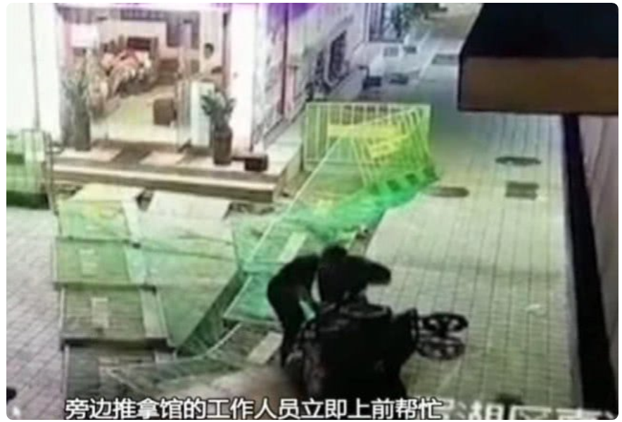 廣東DV現(xiàn)場(chǎng)2018年12月25日訊 事發(fā)在12月21日早上六點(diǎn)半左右、深圳市羅湖區(qū)向西村內(nèi)。只見男子開著三輪車在經(jīng)過圍蔽工地旁的護(hù)欄邊時(shí),突然連人帶車摔倒進(jìn)了圍蔽區(qū)域。他當(dāng)時(shí)撞到了擋板,撞到了擋板之后就倒了,撞到了頭部。發(fā)現(xiàn)男子摔倒后,旁邊推拿館的工作人員立即上前幫忙。