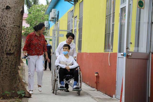 11月24日中午,他坐在輪椅上,讓他的父親向恒金推著他在陽(yáng)光下散步。"這里的空氣好新鮮。我喜歡這里。"他笑呵呵地對(duì)記者說(shuō)。