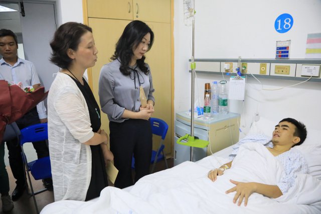 ▲深圳晚報(bào)、深圳市紅十字會(huì)、深圳市關(guān)愛(ài)行動(dòng)公益基金會(huì)等單位領(lǐng)導(dǎo)和工作人員看望病中的向金華。