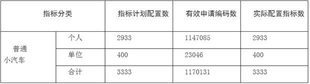 據(jù)悉,2018年第11期以搖號方式配置的普通小汽車增量指標(biāo)共3333個,其中個人2933個、單位400個。參加搖號的有效編碼數(shù)共1171141個,其中個人普通小汽車有效編碼1147564個,單位普通小汽車有效編碼23577個。