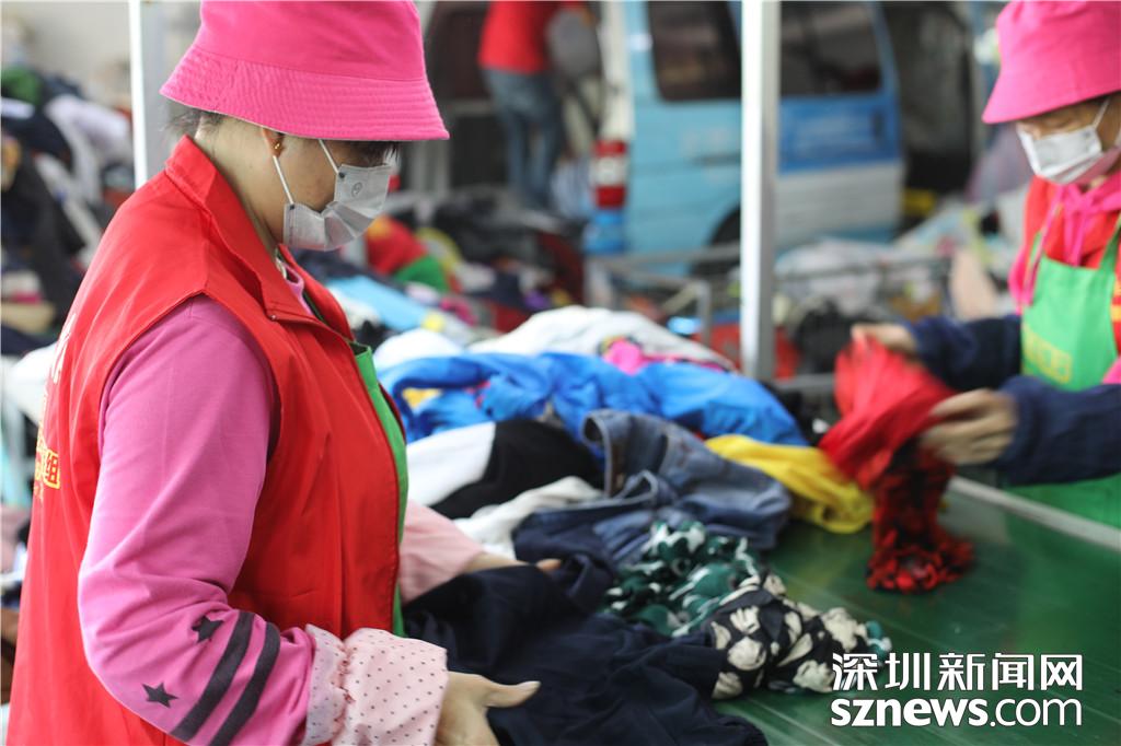 工作人員開(kāi)始對(duì)回收的衣服進(jìn)行第一次分揀