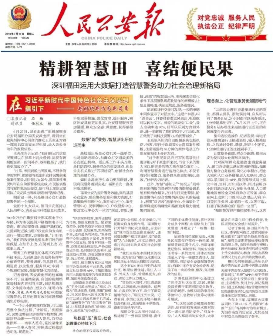 ★★進入新時代,福田公安用信息化手段不斷強化管理、創(chuàng)新服務、提升效能,一件事情接著一件事情辦,不斷滿足群眾最關心最直接最現實的需求,讓數據多跑腿、群眾少跑路,打通服務群眾的“最后一公里”。