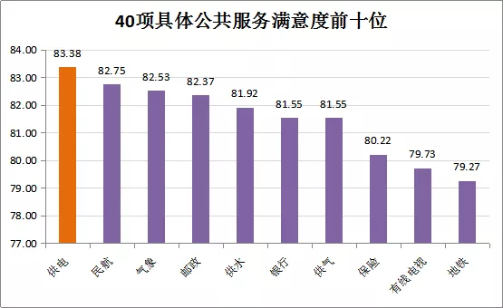 公用事業(yè)及市場服務、供電服務仍然是公共服務體系建設(shè)的亮點,連續(xù)十年位居十大公共服務領(lǐng)域和40項具體政府公共服務滿意度第一位。公眾對公用事業(yè)及市場服務的滿意度依然最高(80.80分);對公共教育、公共交通的滿意度次之;環(huán)境保護、住房保障和就業(yè)保障是政府公共服務建設(shè)的薄弱環(huán)節(jié)。