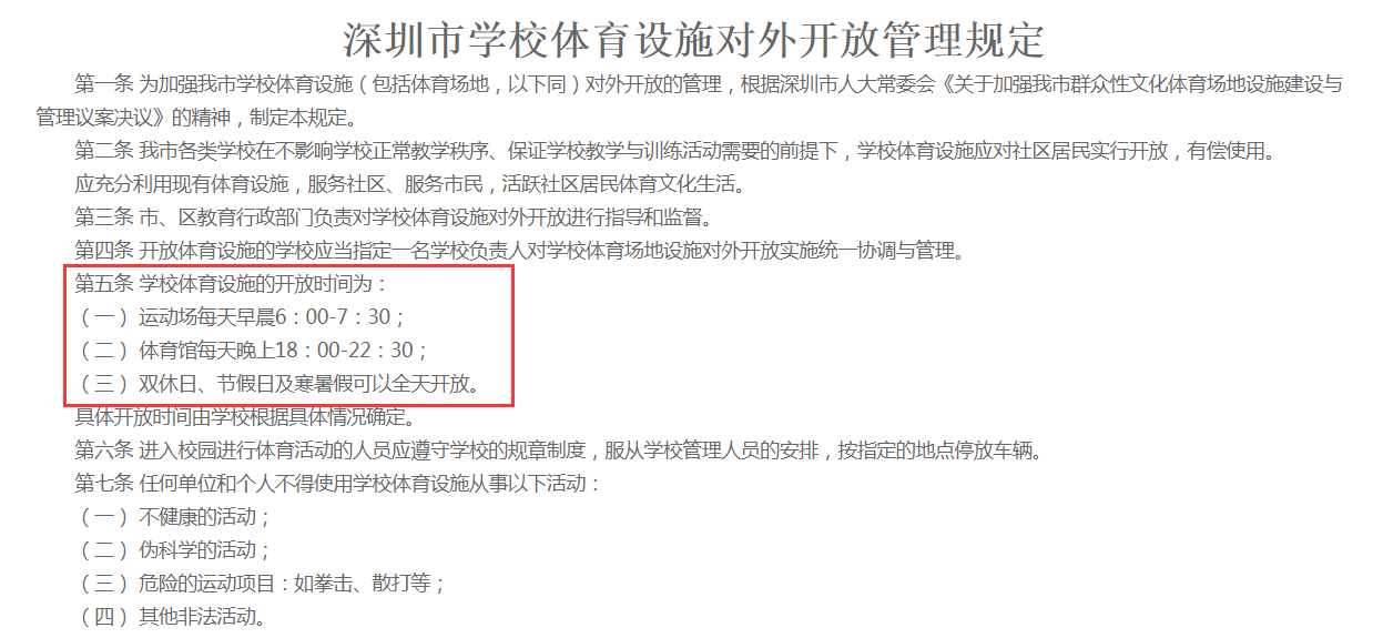 《深圳市學(xué)校體育設(shè)施對(duì)外開(kāi)放管理規(guī)定》部分內(nèi)容