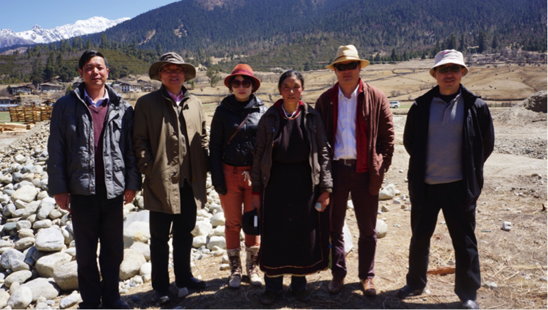 陳可石與魯朗小鎮(zhèn)工程總指揮蔡家華在工地選址(活動主辦方供圖)