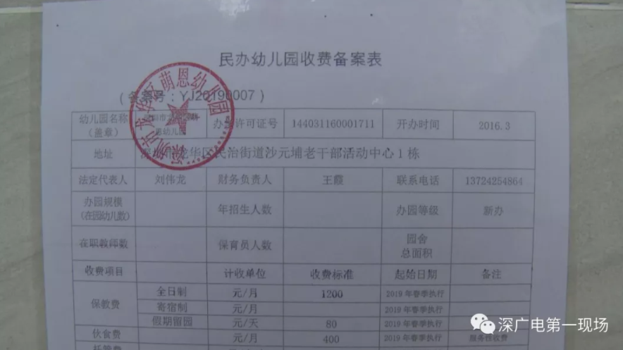 對此,龍華教育主管部門回復(fù):2016年3月同意萌恩幼兒園設(shè)立;2018年7月該園取得民辦非企業(yè)單位登記證書的辦學(xué)資質(zhì),2018年12月向教育局申請了收費(fèi)備案;2019年1月批復(fù)同意他們的收費(fèi)標(biāo)準(zhǔn)。