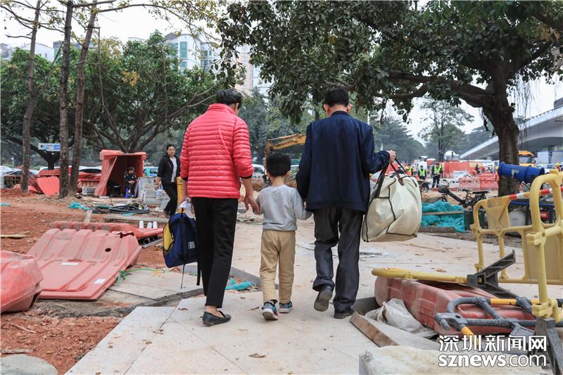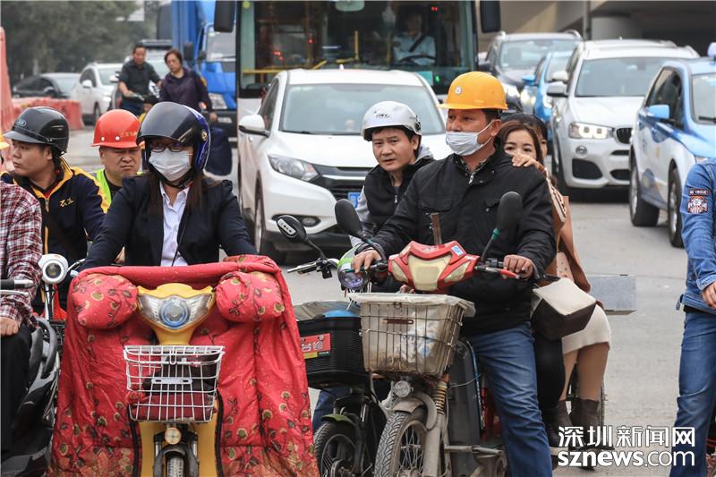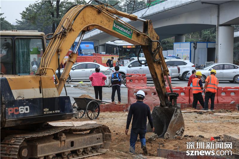 由于寶安大道相關(guān)路段施工,不少市民戴口罩出行