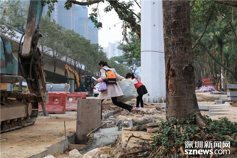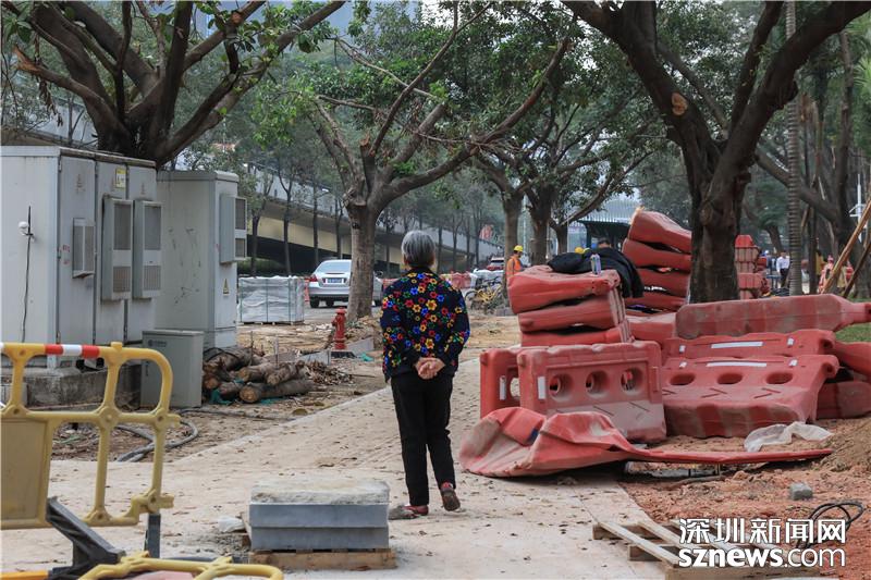 福田僑香路是人大代表?xiàng)钋谡{(diào)研的第二個(gè)點(diǎn),從現(xiàn)場(chǎng)可以看到,目前僑香路人行道正在進(jìn)行施工,不少大型機(jī)械正在作業(yè),發(fā)出陣陣轟鳴聲,來(lái)往行人只能繞道。