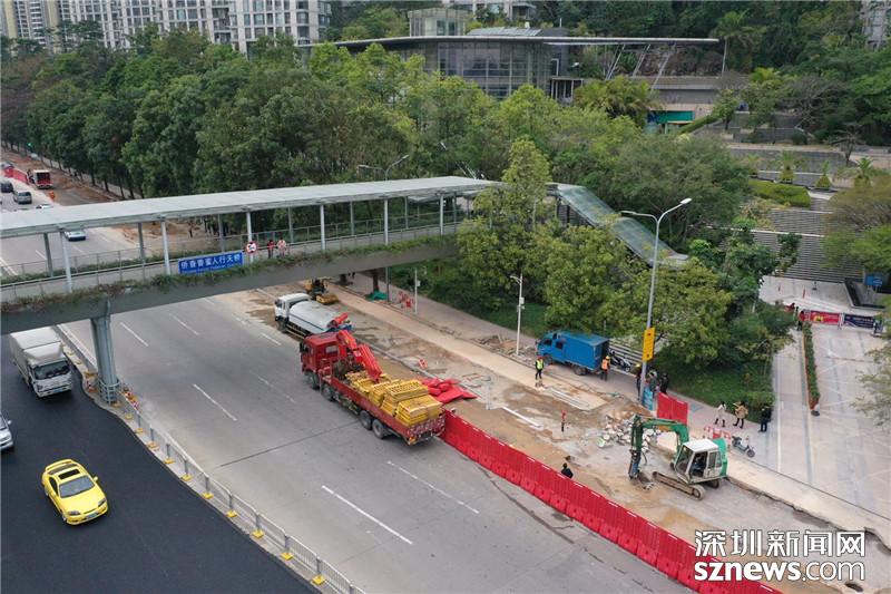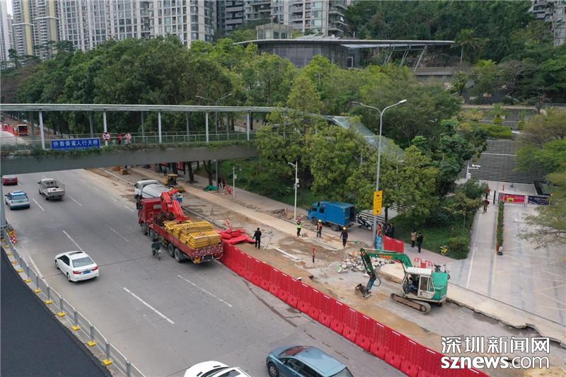 福田區(qū)僑鄉(xiāng)路道路施工現(xiàn)場(chǎng)航拍