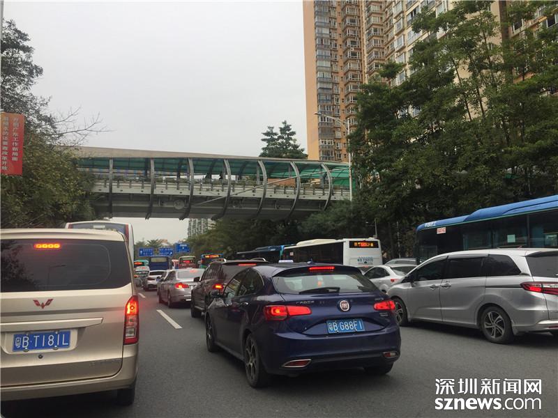 寶安大道多處施工,導(dǎo)致車輛擁堵緩行