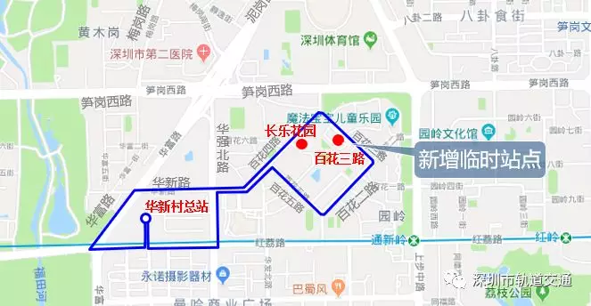 (2)原經(jīng)筍崗西路西行-華富路、泥崗西路南行-華富路-華新路到達(dá)的交通調(diào)整為:上步路-紅荔路-華強(qiáng)北路-華新路/上步路-筍崗西路-百花四路-華新路。