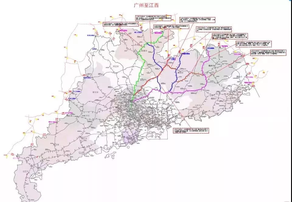 從廣州出發(fā),通往湖南、廣西東北部、江西、福建、廣西北部灣及海南方向的出行指引: