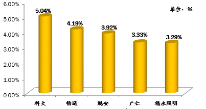 第四季度教練員點評占比最高的前5名駕校分別為:科大、暢通、鵬安、廣仁、福永照明。