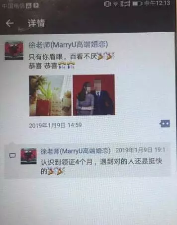 不僅如此,當朋友拿著陳先生的結(jié)婚照,詢問這名工作人員時,工作人員立馬表示,陳先生是在他們婚戀公司找到的對象。