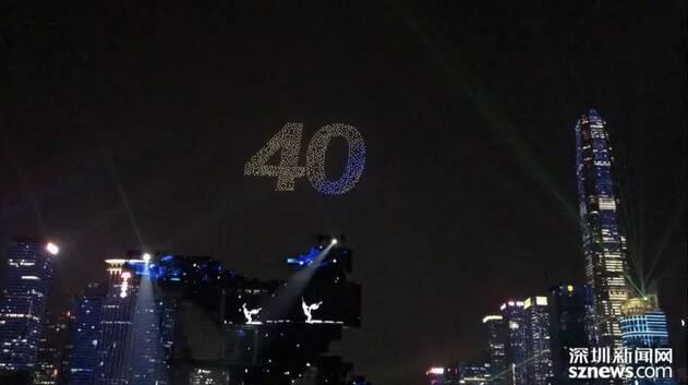 慶祝改革開放40周年大型綜藝晚會《追夢——改革開放再出發(fā)》在市民中心廣場舉行,文化與科技完美結合,展示深圳矢志追夢的豪情。當800架自帶光環(huán)的無人機在空中排出“40”字樣、表演“大鵬展翅”雄姿時,多少人熱淚盈眶,對深圳的熾熱情感在瞬間噴薄而出。