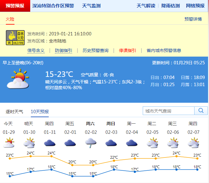 氣象局提醒市民,未來(lái)三天深圳晴朗干燥,是春節(jié)前大掃除和洗曬的好時(shí)機(jī);最近空氣持續(xù)干燥,森林火險(xiǎn)黃色預(yù)警生效中,市民需注意用火安全,外出游玩不帶火種上山;寒冷天氣需嚴(yán)防一氧化碳中毒,浴室應(yīng)注意通風(fēng)良好,注意燃?xì)鉄崴魇褂冒踩?,?yán)禁使用直排式和煙道式熱水器。