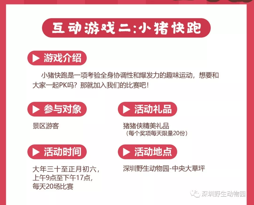 豬豬俠八大活動(dòng):豬豬俠變身生肖守護(hù)神,豬豬俠五大主角歡舞迎賓,童年小英雄陪你看動(dòng)物,八米巨型氣模與你合拍,動(dòng)手又動(dòng)腦豬豬涂鴉繪,一馬當(dāng)先小豬快跑,趣味小豬跳跳跳,集豬豬俠合影贏(yíng)精美禮品。